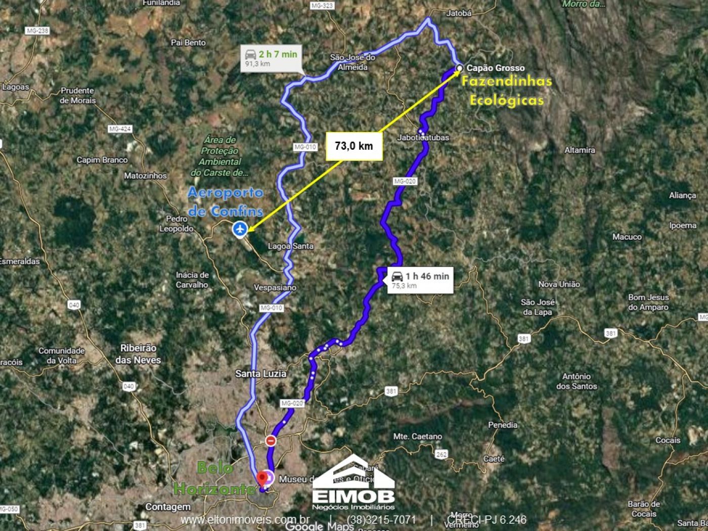 - 73 km do Aeroporto de Confins